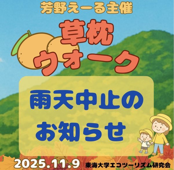 •2025/11/8 いよいよ草枕ウォーク2025のイベントが明日となりましたが、現在の天気予報によりますと残念ながら一日雨予報となっております。本日夜にスタッフでイベント実施の可否を協議し、明日の朝7時までにはこちら実施についての最終決定をご案内いたしますので 必ずご確認ください。